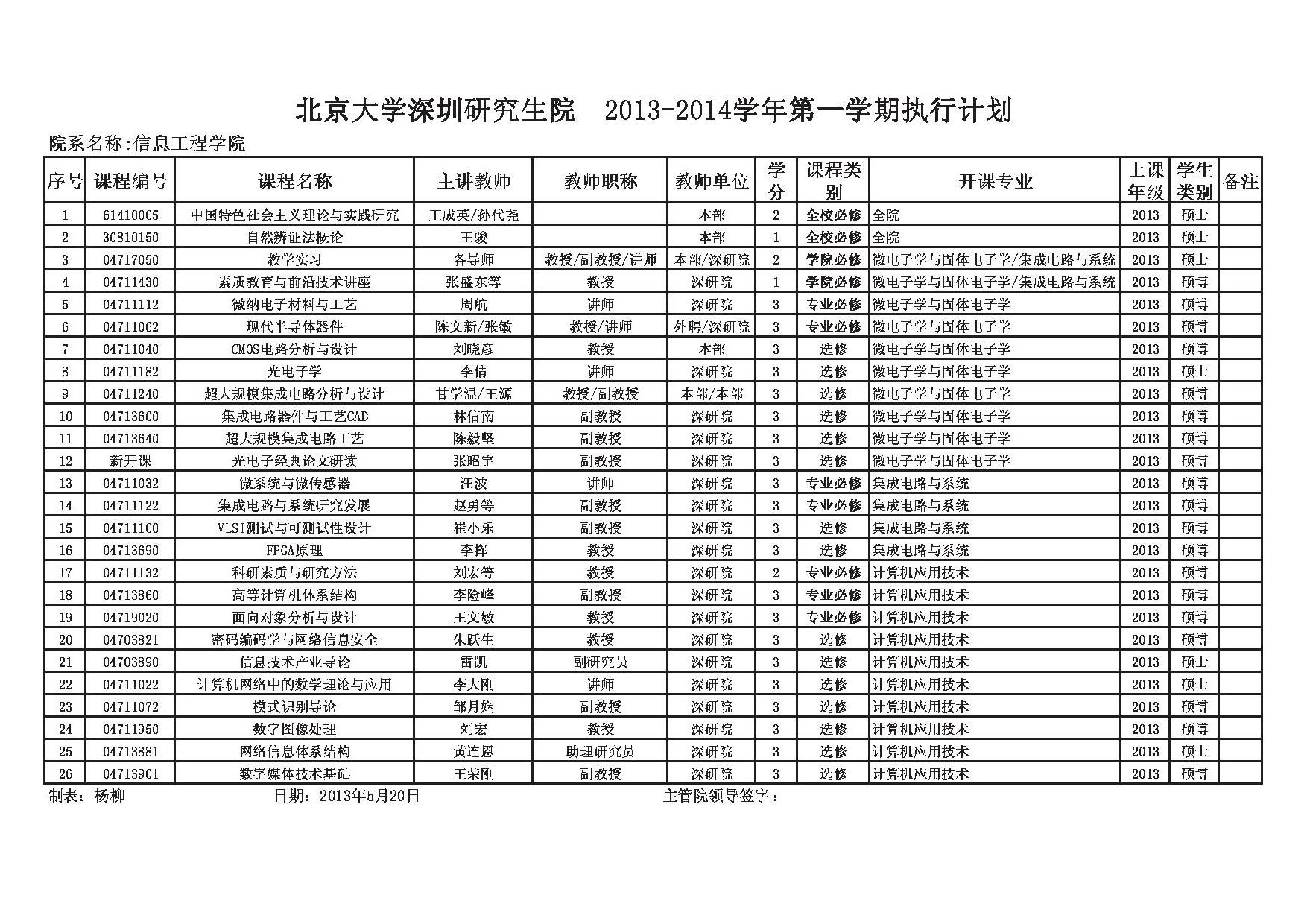High漫 深圳研究生院2013-2014学年第二学期执行计划