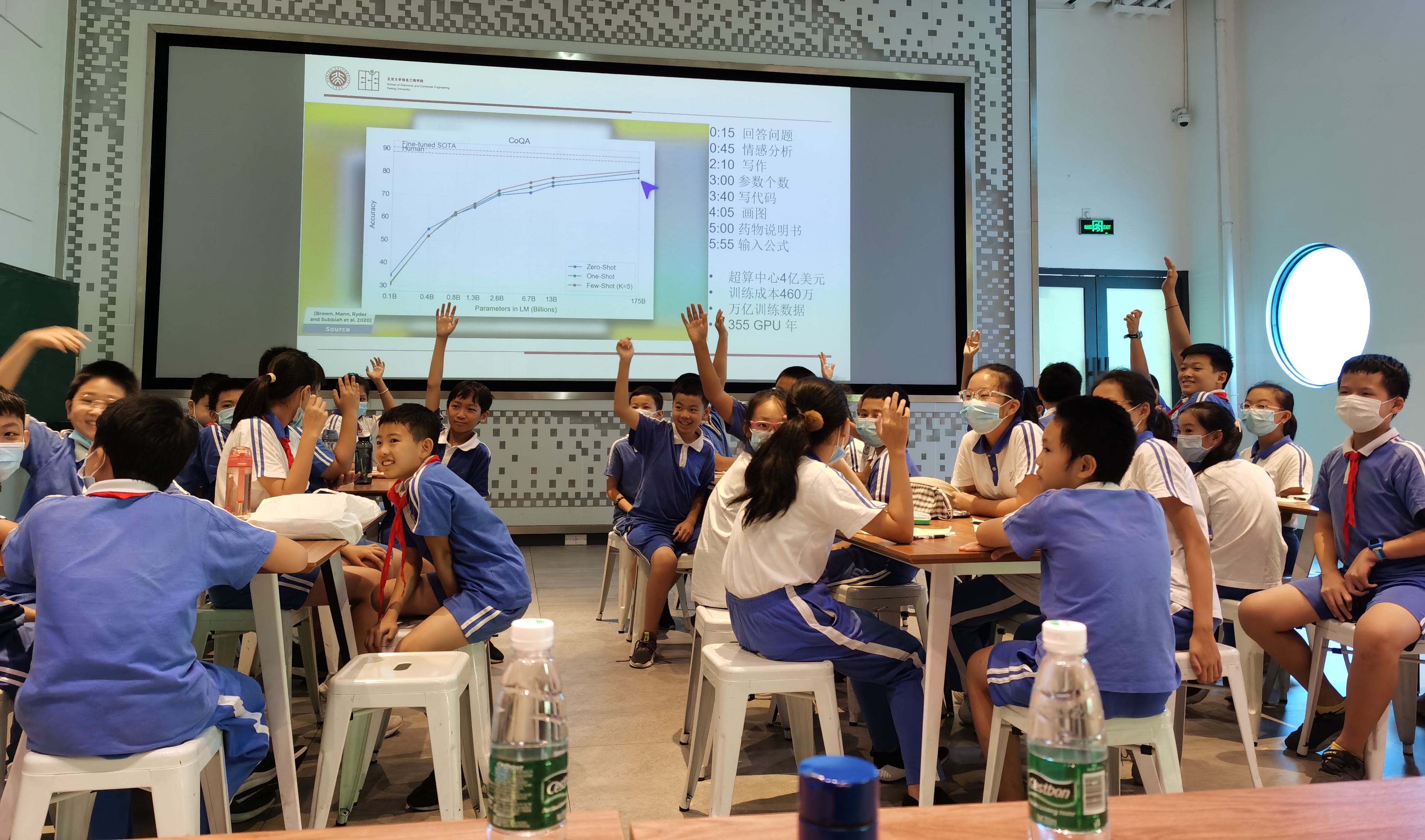 教工党支部党支书李倩老师的带领下,党员教师代表陈杰老师、张婧老师、廖聪维老师和学生代表博士生詹家鳍语同学前往南方科技大学第二实验学校,为六年级的同学们举办了一场科普讲座。本次讲座作为“科技进校园”志愿服务系列活动之一,贯彻了“将专业建设融入党建、用专业知识为群众服务”的宗旨,通过介绍人工智能技术来普及推广科技教育,启迪和拓展青少年的思维、激发学生学习科学的热情来提高他们对科学技术的认识,帮助树立科研报国的远大志向。