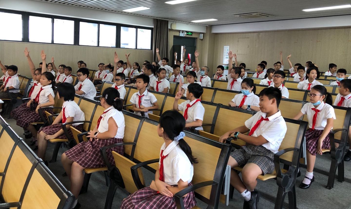 团队一行人抵达讲座会场后,受到了南方科技大学第一实验小学教学科研中心陈家梁副主任的亲切接待,并由熊劲鹏老师组织同学们落座。为了满足防疫要求,同学们交错落座,但大家依然热情满溢,全程与主讲人积极地互动,讲座效果非常好。