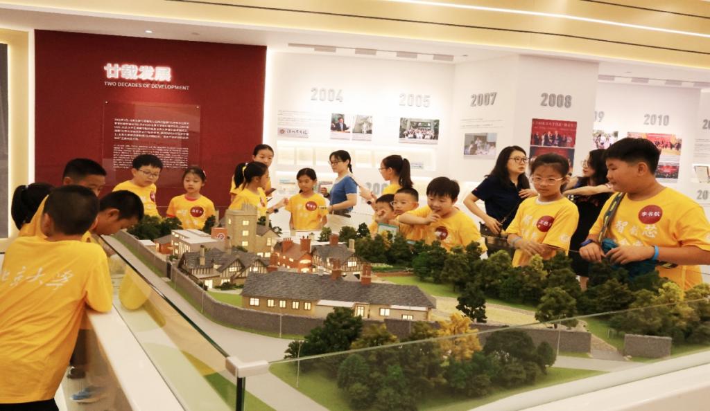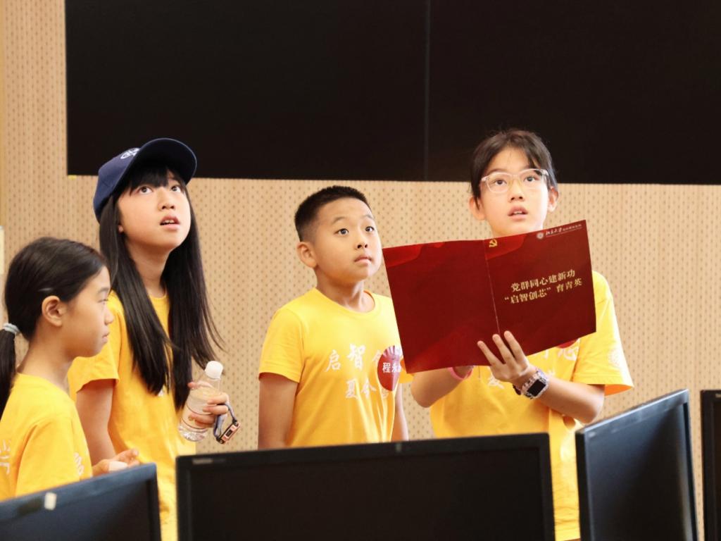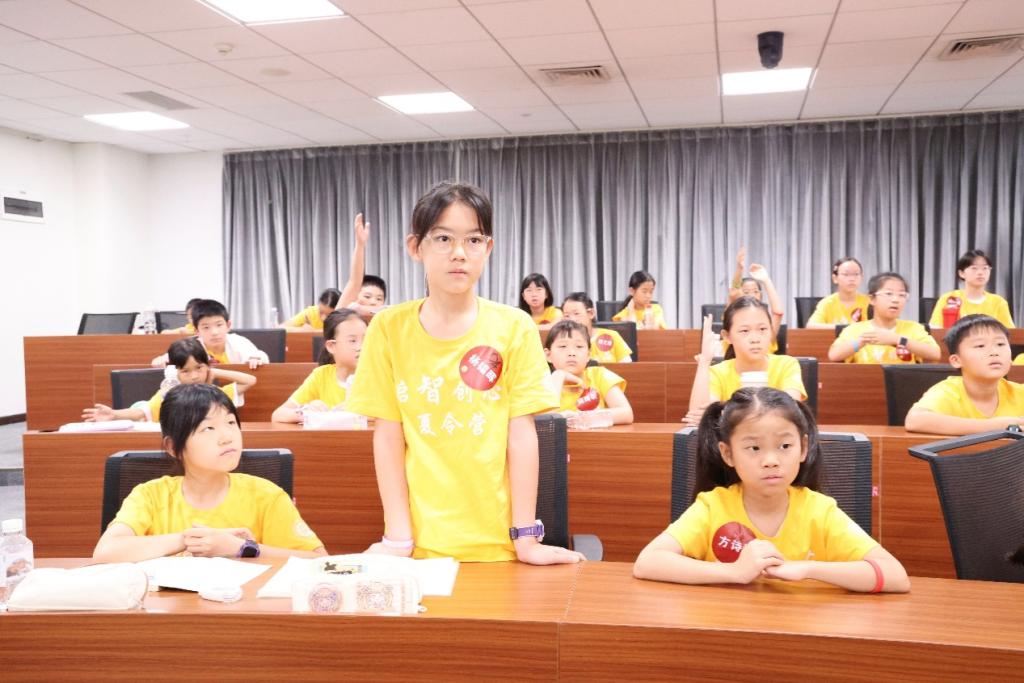 随后,小营员们参观了High漫 教室、数据中心、未来媒体实验室、报告厅与展厅,通过老师讲解与问答等形式,小营员们了解北大汇丰商High漫 的创办历程与发展现状,他们认真聆听讲解,并分小组答题。